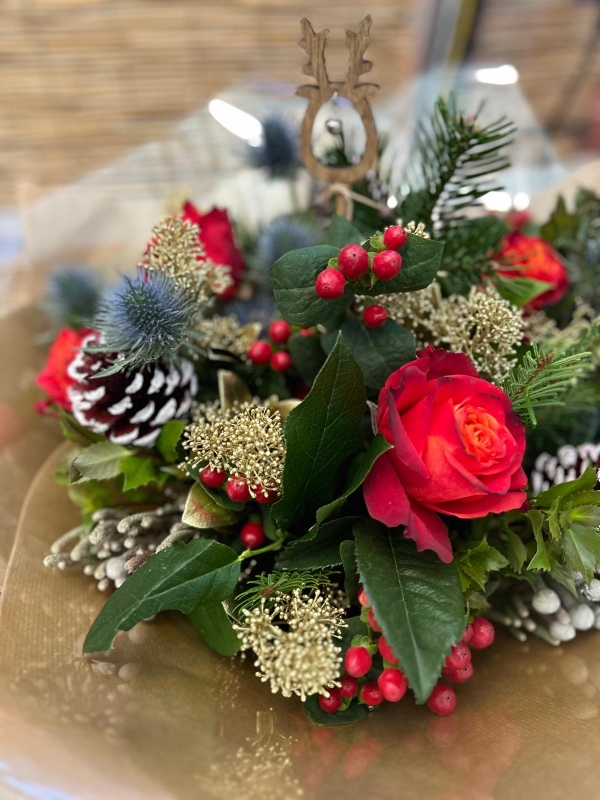 Wonderful festive bouquet filled with cones and berries to give it an extra special touch.